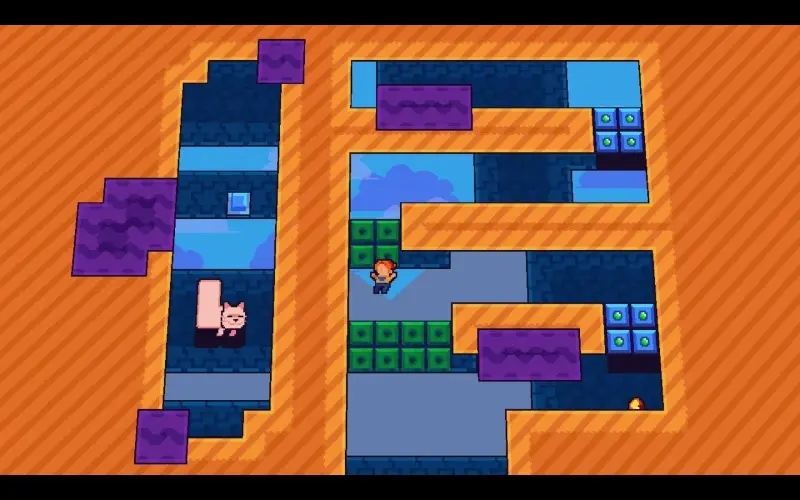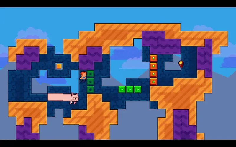 Guie uma heroína audaciosa por fases vibrantes em pixel art, usando tempo e perspectiva para superar enigmas. Seu esperto gato a acompanha, movendo caixas e formando plataformas com seu corpo comprido. Cada fase desafia sua inteligência enquanto você orienta essa dupla improvável.
