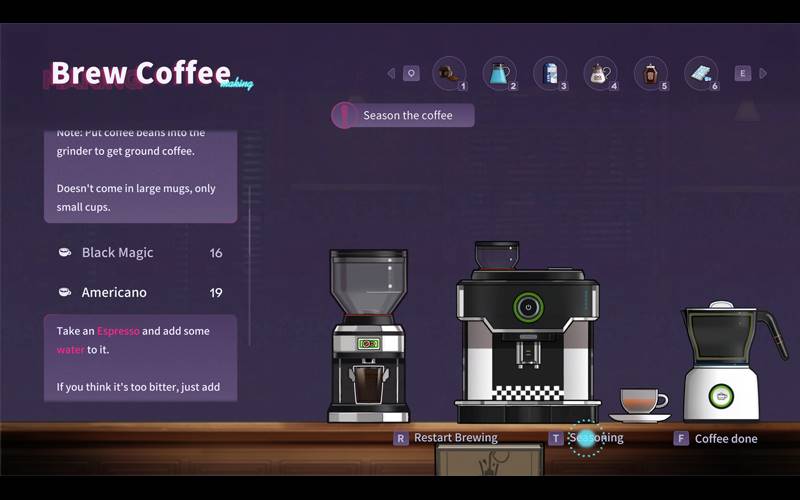 • Cada dia apresenta uma miríade de escolhas. Você se concentrará na estabilidade financeira, aprimorando suas habilidades de barista, dominando feitiços poderosos ou nutrindo relacionamentos com clientes? Lembre-se, o tempo é seu recurso mais precioso e cada decisão tem consequências.