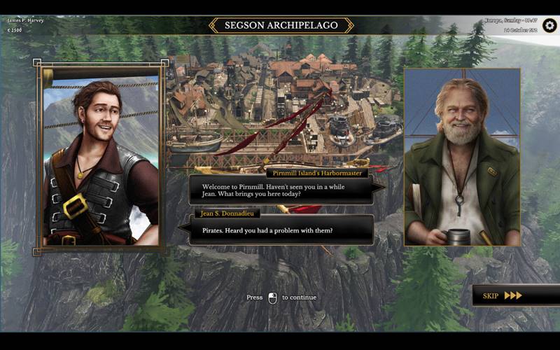 Tu, um capitão destemido, emerges em meio aos destroços, encarregado de forjar tua fortuna no intocado Arquipélago de Suthseg. Troca, explora e navega pelos céus traiçoeiros, enquanto os ventos políticos mudam, ameaçando te envolver em um conflito muito maior que tuas ambições.