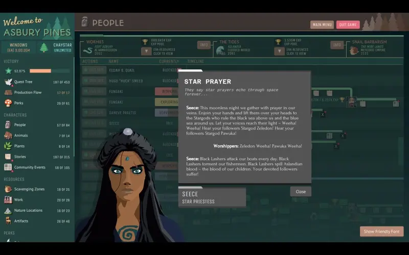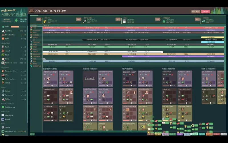 Em Asbury Pines, o trabalho dos moradores revela um mistério de assassinato que se estende por séculos. Combine personagens, artefatos e locais através das eras para revelar histórias ocultas. Construa economias em evolução que conectam o passado, presente e futuro da pequena cidade.