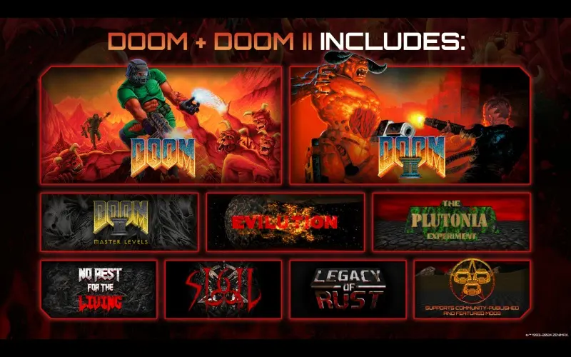 Este pacote de jogos contém os seguintes jogos como um produto combinado: DOOM, DOOM II, TNT: Evilution, The Plutonia Experiment, Master Levels for DOOM II, No Rest for the Living, Sigil, Legacy of Rust e um novo pacote de mapas Deathmatch com 26 mapas.