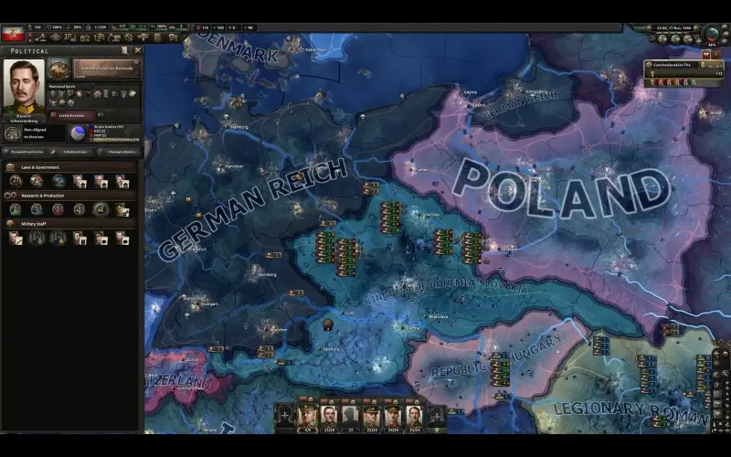 Peace For Our Time reimagina a Europa antes da Segunda Guerra Mundial, onde a Tchecoslováquia resiste à pressão externa em vez de se render. Este Focus Pack para Hearts of Iron 4 explora caminhos de história alternativa moldados pela resistência, diplomacia e tensões crescentes entre nações.