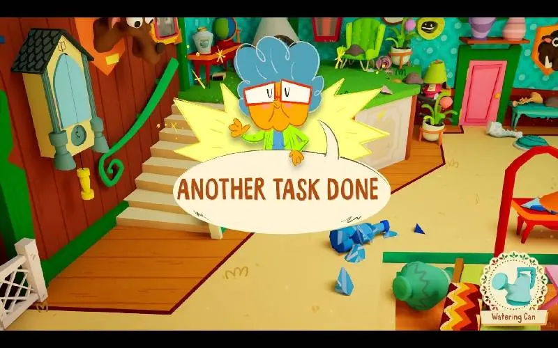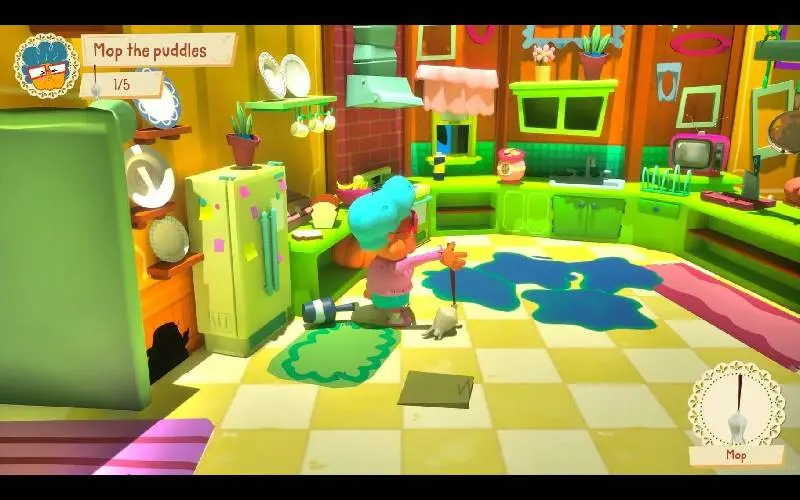 • Percorre a cozinha, o quintal e a sala de estar – cada um deles repleto de trabalhos estranhos e minijogos que rapidamente se descontrolam.