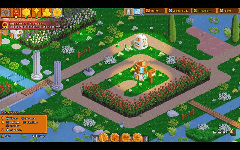 • Desbloqueie centenas de tipos de superfícies e itens para construir e expandir seu jardim. Escolha seu próprio ritmo e atividades, desde desenvolver novas áreas até avançar na história ou simplesmente aproveitar sua criação.