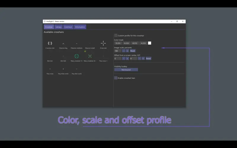 O HudSight permite adicionar uma mira personalizada a qualquer jogo, inclusive em modo de tela cheia exclusiva. Escolha entre modelos prontos, crie sua própria mira, importe imagens ou use miras da comunidade. Sua técnica de overlay garante desempenho estável sem alterar arquivos do jogo.