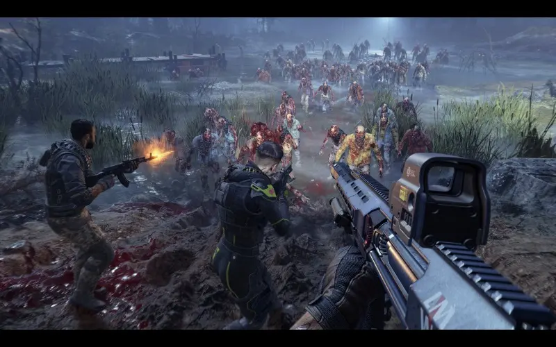 • Junte forças com outros três jogadores, apoiem-se mutuamente compartilhando munições e revivendo, pois a colaboração é essencial para resistir às hordas.