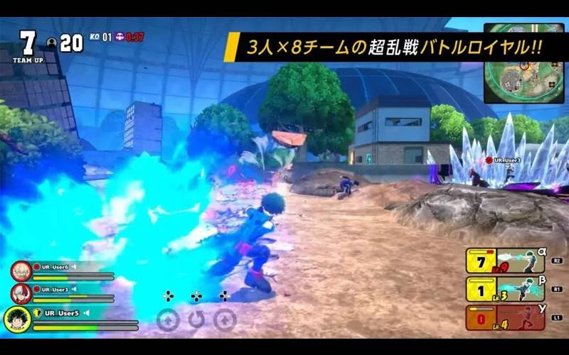 Entre no mundo cheio de ação de “My Hero Ultra Rumble”, inspirado na amada série “My Hero Academia”. Experimente intensas batalhas de Battle Royale com 24 jogadores em diversos cenários como U.A. Island. Comande personagens com Quirks distintos, colabore com sua equipe e adapte seus heróis para o sucesso!