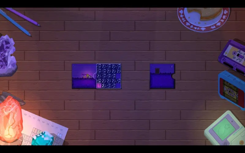 Um mundo onde cada nível chega fragmentado em peças de quebra-cabeça esperando para serem conectadas. Você avança por cada fase ligando e separando essas peças para criar novos caminhos. Cada desafio combina plataforma com estratégia de quebra-cabeça.