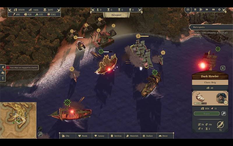 • Assuma o comando da sua frota em batalhas navais ao vivo. Elabore estratégias para atacar navios mercantes, piratas rivais e navios de guerra usando o mapa tático.