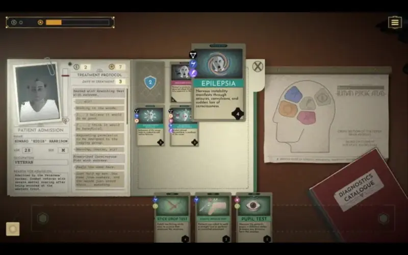 Um jornalista da década de 1920 recebe uma mensagem enigmática sobre o Sanatório Castle Woods. E isso despertou a ideia de se disfarçar de médico! Diagnostique pacientes usando um baralho de sintomas e terapias desatualizadas. Um passo em falso pode expô-lo como impostor.