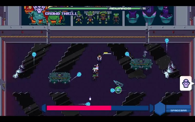 Trabalhador abduzido luta pela sobrevivência em Satellite Moebius, uma arena espacial implacável. Enfrente ondas de alienígenas e robôs enquanto entretém a plateia para ganhar melhorias valiosas. É um shooter sci-fi Roguelike de ritmo acelerado com charme em pixel art.