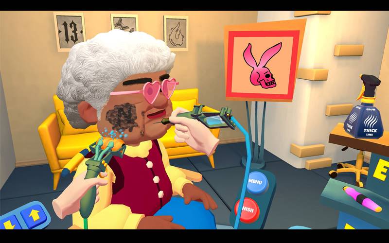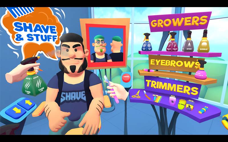 Experimente a emoção da criatividade com “Shave & Stuff”, onde você assumirá os papéis de barbeiro e tatuador, moldando penteados e criando tatuagens com perfeição nesta aventura dinâmica.