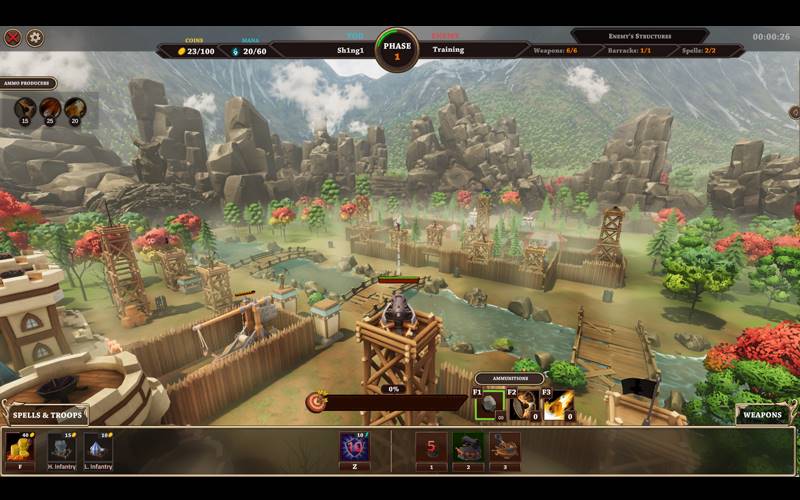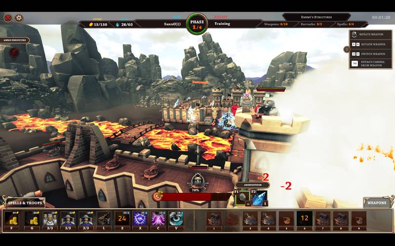 • Assuma o controle das estruturas ofensivas e defensivas dentro do seu castelo. Utilize catapultas e canhões estrategicamente para atacar os pontos fracos do seu adversário, perturbando os seus recursos críticos. Mantenha-se vigilante, pois eles utilizarão táticas semelhantes para ultrapassar as suas defesas.