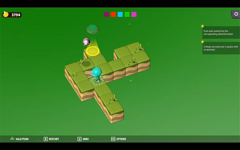 Ajude um alienígena a abduzir animais de fazenda em Sokobalien, um divertido jogo de quebra-cabeça visto de cima onde você navega por 100 níveis com mecânicas intuitivas. Colete moedas para personalizar seu alienígena com chapéus e alcançar marcos dentro do jogo.