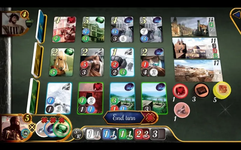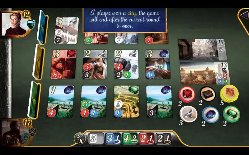 Com o DLC Splendor: The Cities, visite as principais cidades da Europa como Lyon, Florença e Sevilha para conquistar tiles de cidade.