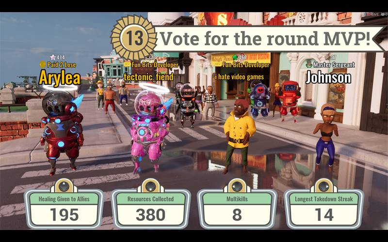 Participe de intensas batalhas PvP 8v8 contra lulas alienígenas em “SQUIDS FROM SPACE”. Defenda a Terra ou lidere as lulas em combates acelerados por mapas diversos. Gerencie recursos estrategicamente e atualize armas para vencer neste jogo vibrante com temática retrô.