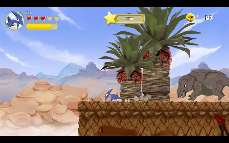Jogue como Saurio, o pterodáctilo atrapalhado, em Super Saurio Fly. Explore níveis, evite armadilhas e lute contra dinossauros para resgatar seus ovos.