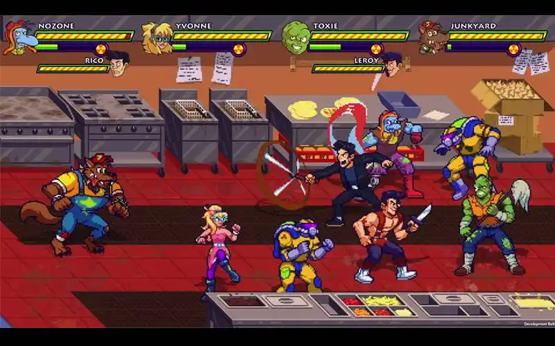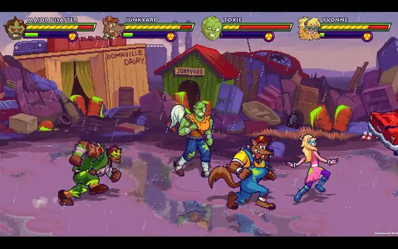 Toxie tá de volta, galera! Mop na mão, tutu arrepiado – é hora de dar um jeito em Tromaville num beat ‘em-up radioativo pra 1-4 jogadores! Junte-se aos amigos e solte os eco-guerreiros pra acabar com poluidores, mutantes e quem mais mexer com o seu terreno tóxico!