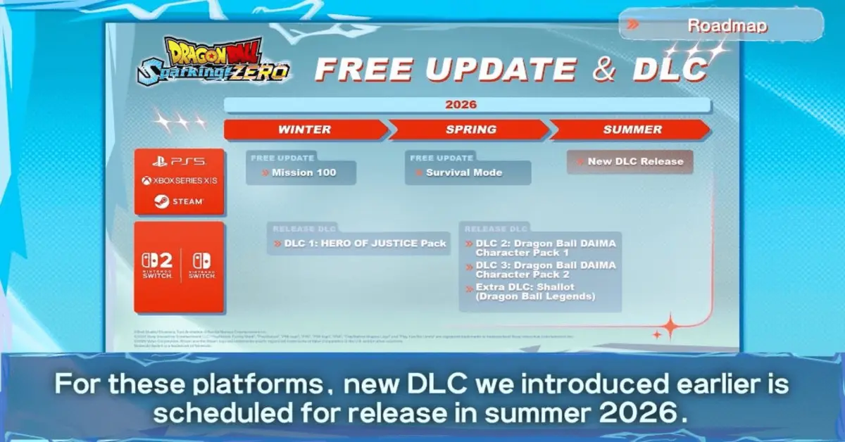 Começo de ano excelente para os fãs de Dragon Ball Sparking Zero: a Bandai lançou o roadmap de 2026 do jogo, mostrando 2 atualizações gratuitas e um DLC grande. Tudo isso chega a partir de hoje até algum momento do verão, o que é uma ótima notícia, já que ainda pode pintar mais coisa na segunda metade do ano.