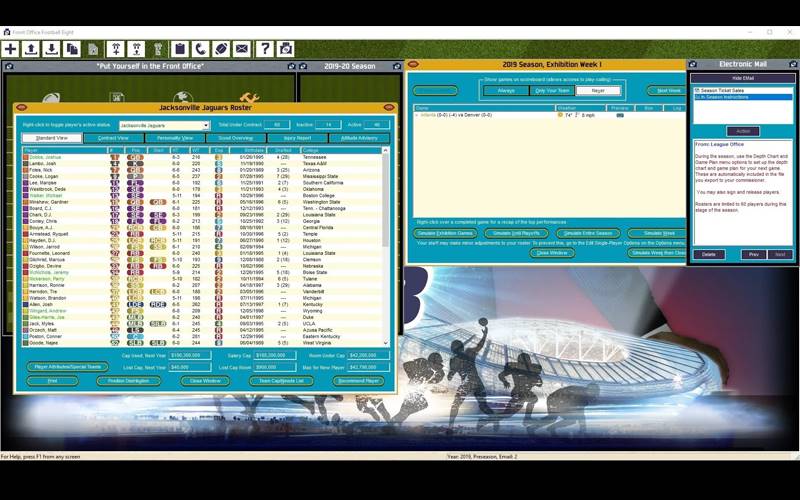 Front Office Football 8 intensifica a diversão com um planejamento de jogo realista, histórico instantâneo e suporte aprimorado para multijogador. Mergulhe na ação com novos cartões de jogador, simulações de probabilidade de playoffs e uma interface de menu elegante. Além disso, aproveite uma Citação do Dia e muitas melhorias no motor do jogo, incluindo um arquivo de jogadores e treinadores de 2019 para uma experiência de jogo atualizada!